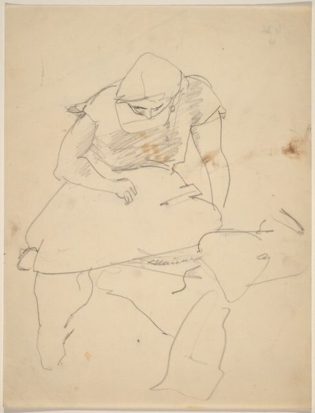 Editor: So, here we have Rothko's "Young Girl Seated, Head Leaning to the Right, Hands Crossed," created with pen and ink. There's an undeniable fragility in the lines, almost hesitant, don't you think? It makes the figure seem pensive, almost melancholy. What leaps out at you? Curator: Melancholy is a beautiful starting point! It whispers of the hidden landscapes within us all, those quiet moments where vulnerability paints the most honest portraits. I wonder, though, if that fragility isn't also Rothko finding his line, so to speak? Think of those early representational works as little seedlings, holding the DNA of those later color fields. It's like watching him shed the outer layers of the world to uncover its raw emotional core. Doesn’t the simplicity of the line almost act like a magnifying glass, pulling us closer to her inner world? What do you make of the crossed hands, almost cradling herself? Editor: They definitely add to the sense of introspection, as if she's guarding something precious. The casualness of the pose, but the protectiveness in the hands—there's a real tension. But it’s very different to his abstracts isn't it? Curator: Absolutely! Yet, even here, can't you see a precursor to those hazy rectangles? Notice the shapes created by the negative space, how the composition itself borders on abstraction. To me, it's like Rothko's figuring out how to express BIG feelings without having to explain them. Think of it as emotional shorthand. Maybe we're not so different from that young girl, after all, huddled with our feelings… looking to create a place for ourselves? Editor: That's a fascinating way to put it – seeing the seeds of abstraction in such a representational work. It almost reframes his entire body of work! I'll never look at Rothko the same way again. Curator: Ah, that's the best kind of art experience, isn't it? Shaking up what you thought you knew, discovering a new corner of your own perception. It’s about that silent conversation between us, the art, and those flickering emotional truths, etched into being.