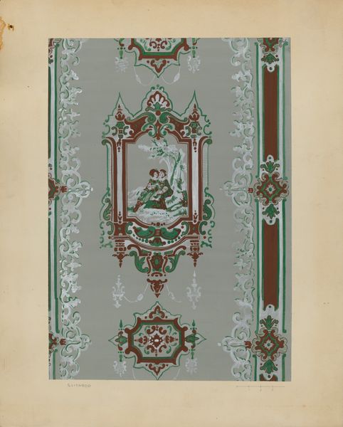 Editor: This decorative piece, titled "Design for a Valance with Bundles and Garlands of Flowers and Leaves Decorated with Gardening Tools upon which Small Birds Rest," is dated between 1870 and 1900 and its creator is unfortunately anonymous. It seems to be a watercolor and print work. It has an airy feel despite the detail; what catches your eye about it? Curator: It is a wonderful encapsulation of an era. The juxtaposition of delicate floral imagery with the robust tools of gardening—the rake, the spade—creates a narrative about man's relationship with nature. What kind of cultural values can be explored within this composition? Editor: That's interesting... I suppose it points to the way humans try to shape and control the natural world, but do so in a way that idealizes it. It’s not just nature, but *beautiful* nature. Curator: Precisely! Consider also the birds perched upon these tools. Birds have been symbols of freedom and the soul for millennia. How do their presence transform the narrative, do you think? Editor: Perhaps the presence of these small birds softens the statement – there is still a shared space where nature can take respite from our labour and shaping of the world. They coexist, or are at least tolerated? Curator: Indeed! It presents an ideal: cultivated beauty living in harmony with the untamed spirit. The valance form itself also suggests the theatrical, doesn’t it? That our very homes should frame, as it were, a carefully constructed world. Editor: It’s amazing how many layers of meaning are packed into a design that seems purely decorative on the surface! I will definitely not look at the decor the same way! Curator: And I hope you now understand that what seems only ‘decorative’ still serves as a potent conveyor of the human drama.