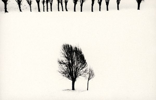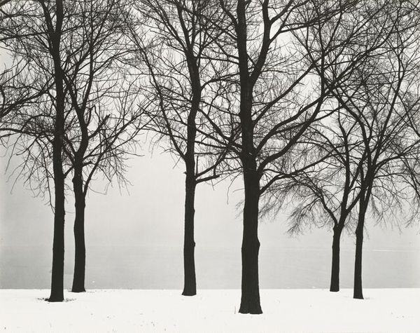 This striking image, *Snow White*, was created by the Iranian artist Abbas Kiarostami, who passed away in 2016. Kiarostami often used photography and film to capture the beauty and simplicity of everyday life. In this photograph, he uses black and white film to depict a landscape of trees covered in snow. The monochrome palette emphasizes the textural contrast between the bare branches of the trees and the smooth, expansive snow. The photograph is rich in tonal variation, and was likely achieved through careful selection of film, lens, and printing techniques. Kiarostami’s choice of subject is important too, because the image invites contemplation on the natural world and the impact of climate on the landscape, and the stark image has social and cultural significance, reflecting themes of isolation and resilience. By focusing on materials, making, and context, we can appreciate the depth of meaning in this seemingly simple photograph.
