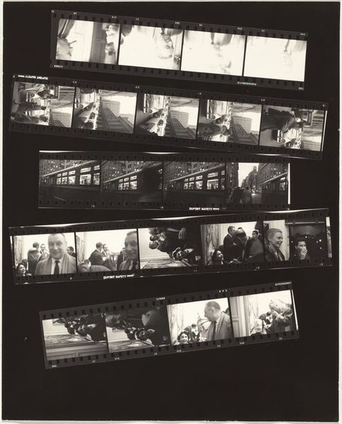 Robert Frank created "Provincetown 4" using photography. The composition features multiple strips of film, each presenting a sequence of images in black and white, invoking a sense of cinematic narrative. Frank's use of film strips as a compositional element is striking. The arrangement invites the viewer to consider the photograph not as a single captured moment, but as a series of related instances. This challenges the traditional idea of the photograph as a discrete, self-contained unit of meaning. The images themselves, though fragmented, suggest themes of childhood and nature. Frank destabilizes the idea of photographic truth, suggesting that meaning arises not just from the content of the images, but from their arrangement and juxtaposition. The materiality of the film – the visible perforations and manufacturer’s markings – further underscores the constructed nature of the photograph. This piece functions as a meditation on the nature of photography and perception, questioning how we construct meaning from fragmented visual information.