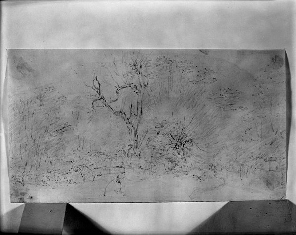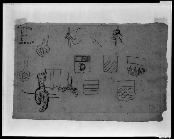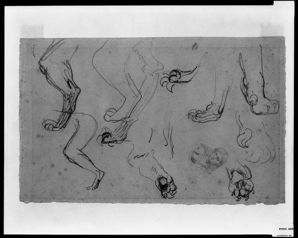 Editor: Here we have Eugène Delacroix's "Two Sketches of a Flower and a Sketch of a Horse's Nose." It's a quick, light sketch, almost ephemeral in its touch. What can you tell me about it? Curator: Delacroix, known for his vibrant Romanticism, here offers a glimpse into his process. The intersection of flora and fauna, though seemingly disparate, can be viewed as his challenge of the rigid artistic hierarchies of his time. How does this juxtaposition affect your reading of his other, more politically charged works? Editor: That’s a great point, I hadn’t considered how this challenges artistic hierarchy! Curator: These sketches, divorced from grand narratives, give space to contemplate the political implications inherent in how we perceive and value different subjects. It's in these humble sketches that Delacroix prompts us to reconsider the social and political implications of artistic representation itself.