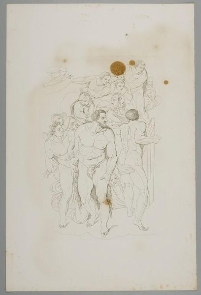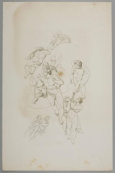 Curator: This is Tommaso Piroli's "Last Judgement," residing here at the Harvard Art Museums. Editor: It's a flurry of bodies, isn't it? A cascade of humanity sketched in delicate lines, like a dream of resurrection. Curator: Piroli, born in 1752, was deeply involved in disseminating classical and Renaissance art through engravings. This piece likely reflects his engagement with those monumental themes. Editor: You can almost feel the weight of tradition, the echo of Michelangelo in the figures' muscularity. But there's also a lightness, a fragility in the line work that's quite affecting. Curator: Indeed. The lack of a firm date suggests this may be a preparatory study, revealing Piroli's process. Consider how this relates to the public's access to such grand narratives. Editor: I find it poignant – this glimpse behind the scenes, a reminder that even the most epic visions begin as tentative sketches, whispered possibilities. It humanizes the whole idea of judgment, somehow. Curator: A fitting conclusion. Piroli offers us a window into both artistic creation and the enduring power of human narratives. Editor: Leaving us to ponder what judgment means on a personal, sketched level.