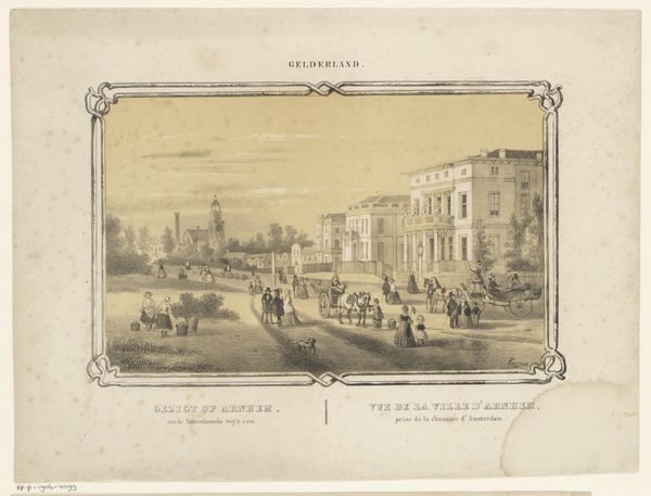 Editor: So, here we have "View of the Oudegracht in Utrecht" from 1863, an etching. It has a very serene feel to it, almost nostalgic. There’s a spire in the distance, figures along the canal... What catches your eye about it? Curator: Well, the immediate draw is the sense of everyday life elevated. Canals, since their creation in the Middle Ages, possess that kind of iconic pull; that particular image suggests trade, connectivity, social interaction— the vein that brings lifeblood to the region. Editor: You’re right; I can see how the canal is symbolic of that vitality! What about the presence of people, casually enjoying the waterway? Curator: Precisely! Note how the artist places them: figures are integrated, but there's no real crowding. Look how they frame and lead the eye to key sites: commercial buildings, residential properties, and, that magnificent spire. Doesn't the church point to a cultural memory of a collective identity? The artist creates almost an ideal version of civic harmony. Do you agree? Editor: Yes, I definitely see that idealization now, in the careful composition. But there's also a strong element of realism, or at least what seems like it... Was it common to depict cities like this? Curator: Absolutely. Dutch Golden Age aesthetics prized representations of the ordinary imbued with profound cultural weight. Each brick and branch signifies progress, permanence, and national pride. Editor: It’s incredible how much cultural history is embedded in one etching! It makes me consider the intention behind depicting such an idyllic scene, especially amidst the backdrop of societal changes. Curator: Indeed. Etchings are carriers of meaning that run deep and still carry resonances now. Editor: That makes me think about the relationship of a place and memory. Thank you!