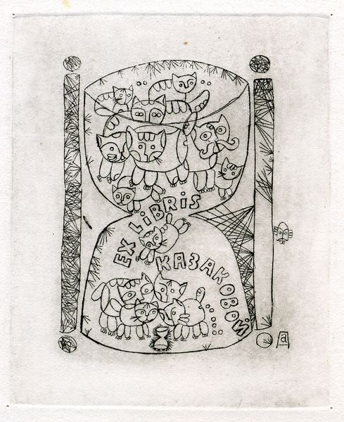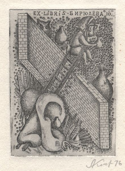 Oleksandr Aksinin made this etching, simply titled 5.IV., sometime before 1985, using line and a whole load of imagination. You can see that he's really thinking through the process of image making. The linear quality comes from the etched lines, and the image is built up in a really intriguing way, with each element layered and distinct. The texture is flat, of course, but the density of marks creates its own kind of space. Look at the grid of abstract forms in the middle section, all contained under the arc of a rainbow. It's architectural but also playful, like a code or alphabet, that could almost be read. The little donkey on top, with its masked rider, is so delicately drawn. It's as if Aksinin is showing us a personal symbology, a playful world that blends dreams, folklore, and personal history. There’s something of Paul Klee in Aksinin’s combination of whimsy and geometric abstraction. It all feels very open and experimental.
