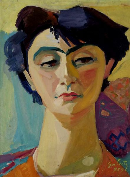 Editor: This is Henri Matisse's "Tête de femme penchée," created sometime between 1916 and 1917 using oil paint. What strikes me immediately is the direct gaze and simplified forms, giving her a powerful yet vulnerable presence. How do you interpret this work? Curator: It's fascinating to consider this portrait within the context of World War I, which was raging during its creation. The formal reduction, almost a mask-like quality, can be seen as a reflection of the anxieties and alienation of the time. Consider how the "primitive" became a recurring theme, how different communities or marginalized subjects were viewed. Does this image echo an almost uncomfortable appropriation and stylization of otherness? Editor: That's a really interesting point. I hadn't thought about the broader social anxieties influencing the simplification of form. But does this also apply to the subject's apparent lack of agency, or maybe it challenges conventional representation? Curator: Precisely. While Matisse’s Fauvist roots emphasized subjective expression through vibrant color, here, the muted palette suggests a somber restraint. We must consider whose stories are being told, and how. Is she merely a passive object of the artist’s gaze, or does that tilted head signify something more… a burden, a contemplation, resistance even? Think about feminist art history: how have women artists challenged the male gaze and reclaimed agency in their own self-portraits and depictions of other women? Editor: So, understanding the historical context and feminist perspectives helps us question the power dynamics represented in the portrait itself. It’s no longer just about aesthetic appreciation, but also about critically examining its social implications. Curator: Exactly. This piece isn't just an aesthetic object; it’s a cultural artifact that embodies the complex tensions of its time, prompting us to investigate further and challenge pre-conceived narratives. Editor: I will never see portraits the same way. Curator: Hopefully for the better.