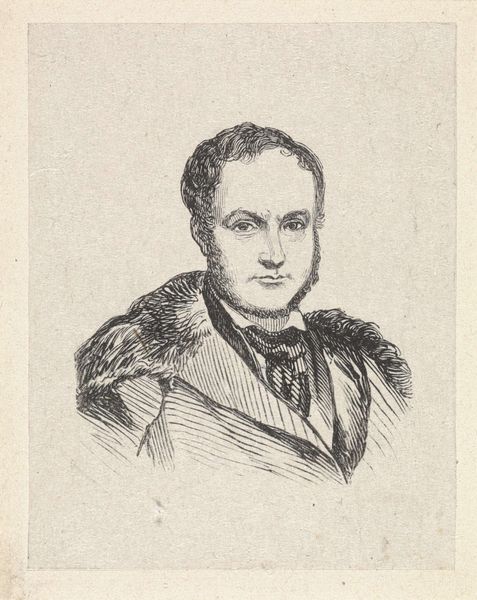 Editor: Here we have an anonymous portrait of Willem, Prince of the Netherlands, created sometime between 1845 and 1899. It’s a pencil drawing, and it's quite striking how formal and posed he appears. How would you interpret this work? Curator: Let's consider the context: a royal portrait rendered in pencil. Pencil, unlike oil paint, suggests accessibility and a certain democratizing of image-making, even in the late 19th century. Yet, the military garb immediately reinscribes class and power. What labor went into producing the paper? What social strata consumed images like this, and why? These are interesting points to note. Editor: That's a very interesting point. It also highlights the contrast between the relatively inexpensive materials, like pencil and paper, and the powerful figure being depicted. Curator: Exactly! How does this impact our reading? Were such drawings circulated widely? Was this perhaps a preparatory sketch for a more “official” portrait in paint destined for display in the homes of loyal and wealthy subjects? Pencil introduces questions about reproduction, distribution, and value that a grand oil painting simply wouldn’t. It pushes us to consider artistic intention as well. Editor: I hadn't considered it that way. So, looking beyond the Prince himself, we can consider the role that portraits like this played in constructing and maintaining social hierarchies. Curator: Precisely. We can examine the paper and pencil as technologies that disseminate specific images. Think about who had access to these materials and who controlled the narrative around Prince Willem. Editor: That’s a great insight; looking at the materials brings up so many previously unseen considerations. Curator: Indeed. Material analysis isn't just about the object; it's about the forces of production, the networks of consumption, and the politics of representation at play.