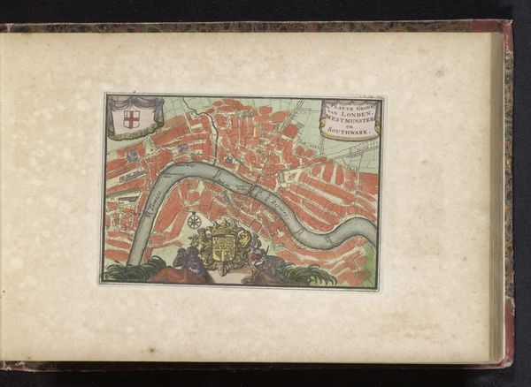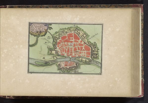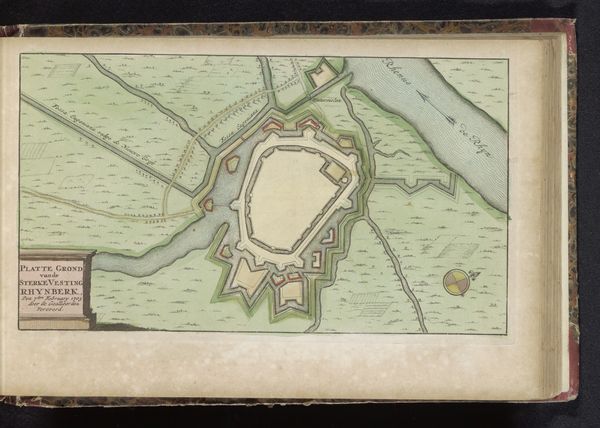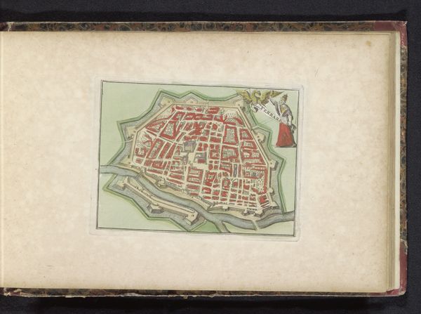 Editor: So, here we have an intriguing drawing called "Plattegrond van Sedan," created between 1700 and 1735 by an anonymous artist. It's a watercolor print of a cityscape. I'm struck by the rigid geometry and fortified structure. What stands out to you? Curator: What I find fascinating about this map is how it functions not just as a representation of a city, but also as a declaration of power and control. During the Baroque period, cityscapes, especially fortified ones like Sedan, were tools of political and military propaganda. This isn't just about showing you the streets; it’s about displaying a carefully designed defense system, projecting strength and strategic advantage. Do you notice the star-shaped fortifications? Editor: Yes, very prominent. Each point seems designed to cover all angles. So the map itself becomes a symbol of military might? Curator: Exactly. Consider who might have commissioned this map and for what purpose. Was it for military planning? To impress potential allies? Or perhaps to intimidate rivals? The medium – watercolor and print – also tells us something. Prints allowed for wider dissemination, while the hand-applied watercolor adds a touch of prestige. This piece served a public function. Editor: It’s like the artwork itself participates in the power dynamics of the era. I hadn’t thought of it that way. It's not passive, but active. Curator: Precisely! It’s a reminder that art, even seemingly objective depictions like maps, are always shaped by social, cultural, and political forces. Editor: This makes me see maps, and the choices behind them, in a totally new light. Curator: And for me, revisiting this map highlights how artistic representation intertwines with displays of dominance and political strategy throughout history.