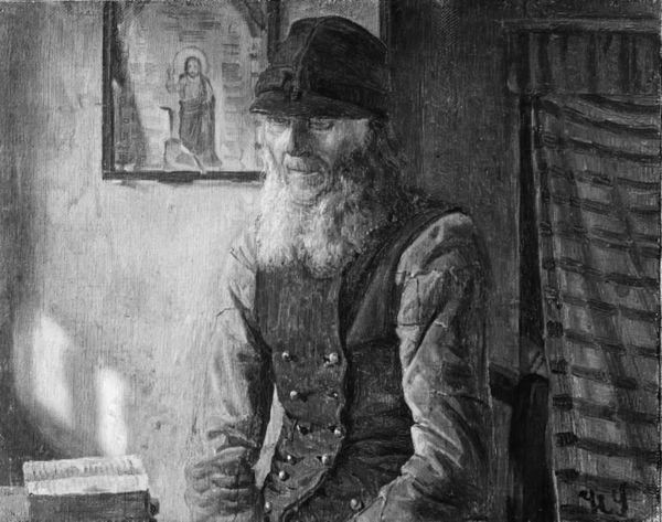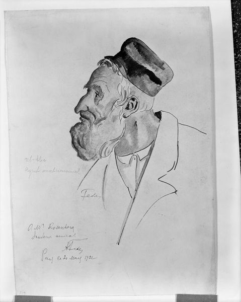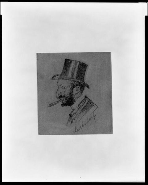 Editor: This is Adolph Menzel's "Worker Facing Left," a small drawing related to his famous painting of the iron rolling mill. There's such weariness etched into his face. What statement do you think Menzel was making with this piece? Curator: Menzel is showing us the human cost of industrialization, isn’t he? The worker’s gaze, his weathered face – it's a study in the alienation experienced by the working class during that period. How does it resonate with our understanding of labor today? Editor: I see what you mean! It really makes you think about the parallels between then and now. Curator: Precisely. It challenges us to reflect on the systems that perpetuate these inequalities and consider our own roles within them.