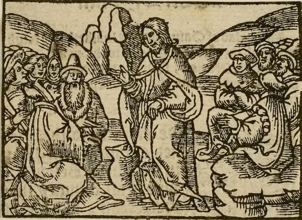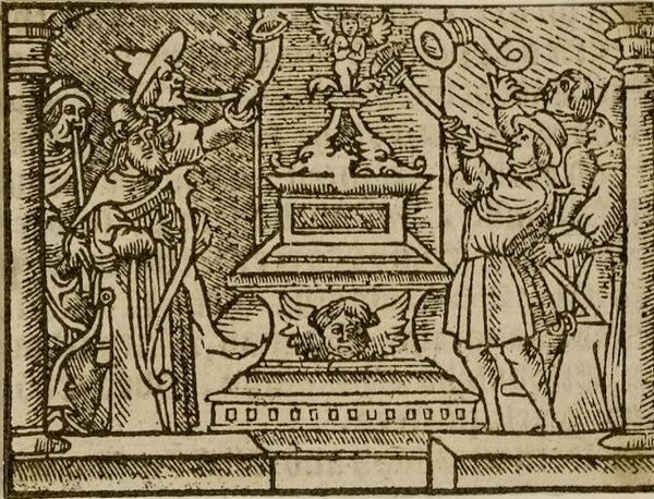 Editor: This is Illustration XIX, an anonymous print at the Harvard Art Museums. The lines are so stark, creating a rather dramatic scene. What symbolic elements stand out to you? Curator: The architecture immediately speaks to a sense of established order, doesn't it? But look closer. Do you see the figure on the scaffolding, seemingly dismantling something? Editor: Now that you mention it, yes! It seems like a cross! What could that symbolize? Curator: Could it represent a challenge to authority? The cross, often a symbol of faith, being taken down. Consider how such imagery might resonate with anxieties about societal change. Editor: That’s a fascinating point. I hadn't considered the image as questioning established structures. Curator: Exactly! Symbols are never fixed, are they? They evolve with the viewer. Editor: Thanks for opening my eyes to the layers of symbolism at play here.