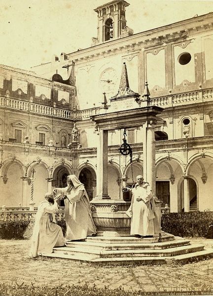 Giorgio Sommer captured this image of two men at a well in the courtyard of the San Martino Carthusian Monastery in Naples. The precise date is unknown, but Sommer was active in Italy from the 1860s through the early 1900s. Sommer, a German photographer working in Italy, was part of a wave of Northern European artists drawn to the Italian peninsula. His work provides insight into the cultural dynamics of the time, revealing how Italian society was observed and documented through the eyes of an outsider. Sommer’s choice to photograph local monks at work is visually arresting because it captures the slow pace of monastic life against the backdrop of the rapidly modernizing world. The photograph prompts contemplation about labor, class, and spiritual devotion. The image offers us a moment to reflect on how individuals navigate their identities within these contexts, and how these historical representations shape our understanding of societal roles and values today.
