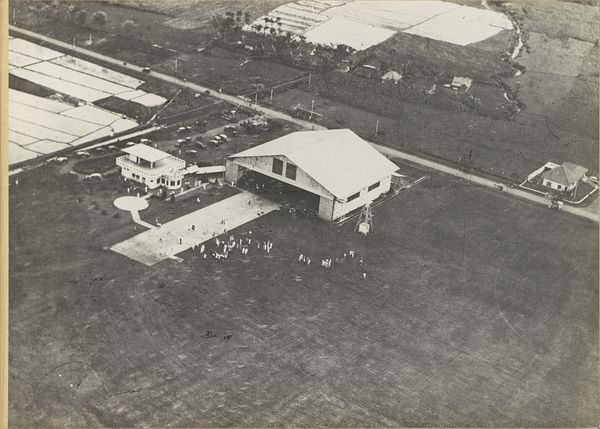 Editor: This is Joe Deal’s "View, Corona, California," from 1978. It's a black and white photograph that presents a landscape, or rather, a very particular kind of landscape. It feels so…clinical, almost like a stage set instead of a lived-in place. What's your interpretation? Curator: That clinical feel is key, I think. Look at how Deal frames this scene. There's a detachment, a coolness, that speaks directly to the anxieties of suburban development in the late 70s. Consider the New Topographics movement he was associated with; it aimed to document the human alteration of the American landscape without romanticizing it. Editor: So, it's about the *impact* of development, rather than just documenting development itself? Curator: Precisely. What impact do you see? It’s not just about a house here, or a building there. How does the framing affect your impression? Editor: I see that everything is meticulously planned – the playground equipment, the basketball court, even the trees. There’s a lack of spontaneity, like nature itself is being controlled and formatted. I’m also struck by the elevated perspective; it feels like we’re watching from a distance, reinforcing that sense of detachment. What would residents at the time have thought of this imagery? Curator: It probably would have resonated, maybe uncomfortably. Mass-produced suburbia promised an ideal, a controlled environment, but Deal’s photograph suggests a loss of authenticity. It prompts viewers to consider whether this “progress” is actually progress, or something more sterile and alienating. Consider its public display in art institutions – was it seen as criticism, or just documentation? Editor: That's a great point. I'm starting to see this less as a simple photograph and more as a social commentary on a specific cultural moment. Thanks for showing me the deeper context of the artwork. Curator: And thanks for teasing out the threads of this critique. I think that careful observation can highlight the subtle social dynamics influencing its creation and our present-day viewing.