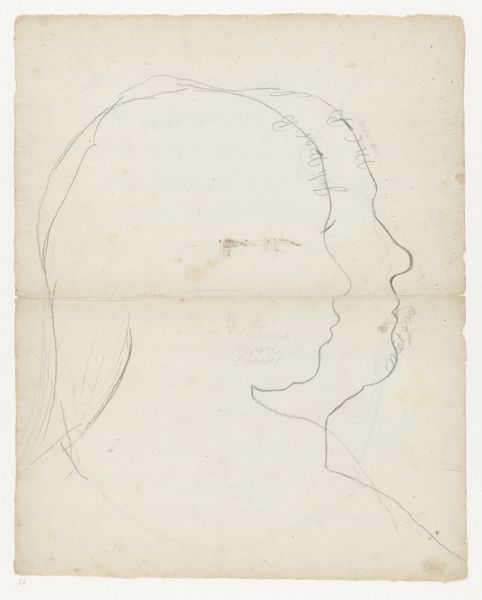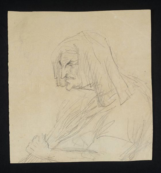 Curator: This is an untitled pencil drawing by Richard Diebenkorn, depicting the head of a woman, created sometime between 1955 and 1967. Editor: It's remarkably simple, isn't it? So few lines, but they convey a profound sense of introspection. There's almost a melancholy to the downturned gaze. Curator: Absolutely. Diebenkorn, even in this seemingly quick sketch, manages to capture a palpable sense of emotion. It invites reflection on the psychology of turning away. What does it mean to avert one's gaze, both literally and metaphorically? Editor: Considering the period, the 50s and 60s, I can't help but wonder about the woman's role in society. Was she turning away from those expectations, or being forced to turn away? The pose certainly suggests a sense of detachment from the viewer, or maybe even a reluctance. Curator: That's a compelling reading. The head covering, while simply rendered, carries its own historical weight. Depending on cultural context, it can symbolize anything from piety to oppression. It is worth studying what such a familiar form might symbolize or trigger emotionally, even for modern audiences. Editor: Indeed. Diebenkorn often explored figuration, so this drawing exists within a larger body of work where the female figure appears and reappears, engaging social expectations in American life. This work really is about representation of a social type and about how social and political structures govern women. Curator: It's fascinating how a seemingly simple drawing can unlock such complex layers of interpretation. The starkness of the medium only intensifies that feeling. Editor: A perfect example of how a humble material can carry powerful cultural and emotional meanings. Curator: A study in suggestion as much as a record of reality, inviting the audience to partake in the construction of this figure's personal history. Editor: Yes, I walk away with a deeper appreciation for the visual symbols around representations of women during that period. I'm intrigued by her gaze and story now.
