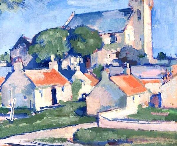 Amadeo de Souza-Cardoso painted "House Manhufe" with oil on canvas, making marks that feel both deliberate and playful. He's not trying to trick you into thinking this is real life, but he is trying to show you a way of seeing. The colors, wow, they're not exactly how your eye would see them but they're how your mind might remember them – that deep cobalt window against the ochre wall, for example. Everything is built up with visible brushstrokes. Look how he defines the leaves with these quick, dab-like gestures. It's not about perfection but about capturing the essence, the vibe of the place. You can feel the sun, almost smell the earth. De Souza-Cardoso’s interest in movement and the incorporation of Cubist and Futurist elements reminds me of artists like Robert Delaunay. Like a conversation, you know, one artwork echoing another across time. What I love most is its embrace of ambiguity, a reminder that art is more about asking questions than giving answers.