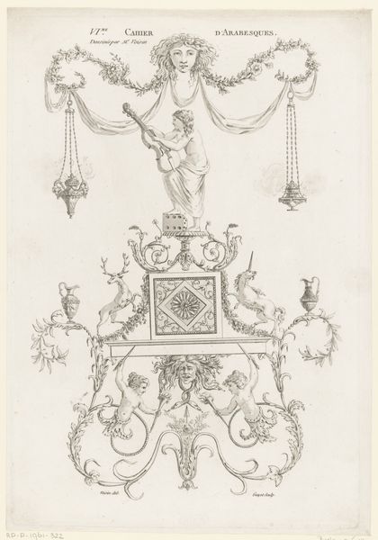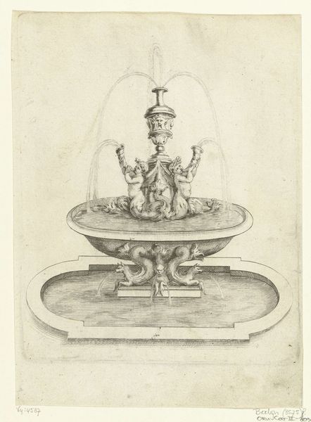 Gerrit Visscher made this drawing of a garden vase with monograms and weaponry on the ground with graphite. The vase dominates the composition, its elaborate form rendered with precise lines, and detailed ornamentation that commands attention. The monochromatic medium helps us focus on the texture and patterns, creating a sense of depth and tactile richness. The vase is adorned with decorative elements, including monograms and classical motifs. The weaponry scattered on the ground adds an intriguing, almost contradictory element. The vase, a symbol of beauty and refinement, is juxtaposed with instruments of conflict, prompting a reflection on themes of power, protection, and the transient nature of dominance. The detailed rendering of the vase contrasts with the more gestural depiction of the surrounding weaponry. This suggests a deliberate choice by the artist to emphasize the vase as a focal point, inviting us to consider the symbolism and cultural associations of the objects. This contrast destabilizes a fixed symbolic meaning, presenting us with a site of ongoing interpretation.