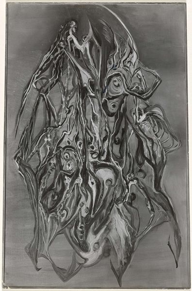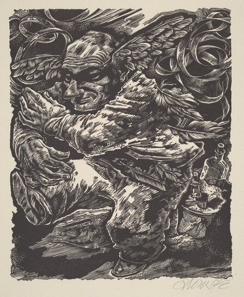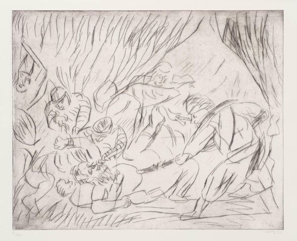 Curator: Oh, my goodness, this piece—Otto Dix's "Homunkulus" from 1918—feels like staring into a fever dream. The sheer intensity of the ink! It practically vibrates. Editor: Absolutely. Look at the relentless use of ink on paper, the almost violent crosshatching. It's a portrait of turmoil, a really visceral reaction laid bare. Curator: Indeed. You've got this enclosed figure in the center—a homunculus, a little man—completely vulnerable amidst a chaotic swirl. Almost as if the forces around him are pressing in, physically, viscerally as you mention. There's this raw, untamed energy. Editor: That’s the beauty and terror, I think, of expressionism boiled down to its essentials. It feels almost too immediate, but the paper gives it its structure and presence. Considering the war, this probably wasn't an artwork aimed for consumption or to please, just sheer outpouring on fragile cellulose support. Curator: You’re so right about the impact of that historical context, too. The war was ripping the world apart, and here's Dix translating that psychic landscape onto paper. I can practically smell the chemical reek from the dark, dense inks employed by the artist as a scream for peace. Editor: Thinking about that process, you’re right—the inks carry their own history, manufactured and distributed even during wartime, made into tools. Every stroke, born of available material and physical labour, mirrors larger anxieties around the cost of war in raw human experience. Curator: A poignant echo. I think Dix manages to transmute individual terror into universal grief and suffering using this raw materiality. The Homunculus feels like both everyman and nobody. Editor: Exactly. We began looking at ink and paper, we can end understanding Dix's deep commitment and material relationship to translate, critique, and respond to societal tragedy in real time, making his contribution incredibly unique. Curator: Yes! A powerful reminder of the burden of humanity and a humble testament to the power of artistic process under such great strain.
