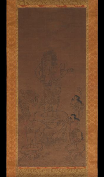 Ryūshū Shūtaku painted ‘Fudō Myōō and Two Attendants’ in the 14th century, using ink, color, and gold on silk. Ryūshū Shūtaku, also known as Myōtaku, lived during a time of significant cultural and religious exchange between Japan and China. As a Zen Buddhist monk and artist, he navigated the complex interplay between spiritual practice and artistic expression. Fudō Myōō, a wrathful deity, embodies the power to confront and transform negativity. In Japanese Buddhism, the deity is revered as a protector and guide. Notice how Fudō Myōō is depicted with a stern expression, holding a sword and a rope, ready to strike down ignorance and bind evil forces. As you contemplate this image, consider how Ryūshū Shūtaku's work invites you to confront your inner demons, seek transformation, and embrace the path of enlightenment. The painting serves as a reminder of the power of art to inspire introspection and promote spiritual growth.