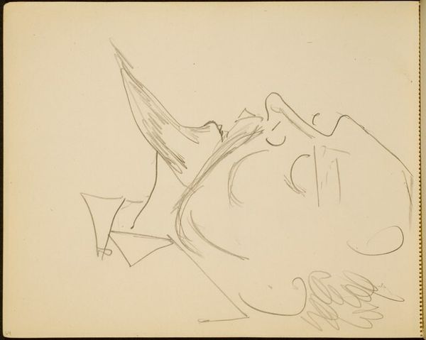 Max Beckmann made this drawing, Man with a Pointed Beard, using pencil on paper. Beckmann was a German artist who lived through both World Wars, events that profoundly impacted his artistic vision. This drawing, with its stark lines and almost grotesque features, reflects the unease and psychological disruption prevalent in Germany between the wars. The pointed beard, an old-fashioned style, hints at a critique of outdated social structures. The man's closed eyes and downcast expression suggest introspection, or perhaps resignation, in the face of a turbulent world. Beckmann was associated with the New Objectivity movement, a rejection of Romantic idealism in favor of a more direct and often cynical view of reality. By studying the cultural history of the Weimar Republic, the socio-economic conditions that shaped the art market, and the rise of expressionism, we can gain a deeper understanding of this drawing. Art like this is contingent on the social and institutional context in which it was made.