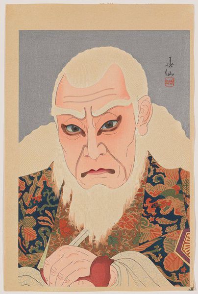This striking woodblock print of Actor Matsumoto Kōshirō VII, by Natori Shunsen, captures the actor in character. The power of the piece lies in its dramatic color choices and bold lines. It feels very immediate, as though the artist was interested in capturing the energy of the moment. There's something almost cartoonish in the red markings around the eyes, aren't they wild? What’s so impressive is how the artist uses this to convey a sense of heightened emotion. Everything about the image is theatrical; the intense stare, the elaborate costume, the grey background. Even the whiteness of the face, framed by that white wig, feels like a mask. I'm reminded of some of the bold portraiture of Gauguin, though the graphic quality here is very much its own thing. This is definitely an artist who understands the power of an image to create a world of its own. It's a reminder that art, like theater, is a space of transformation and possibility.