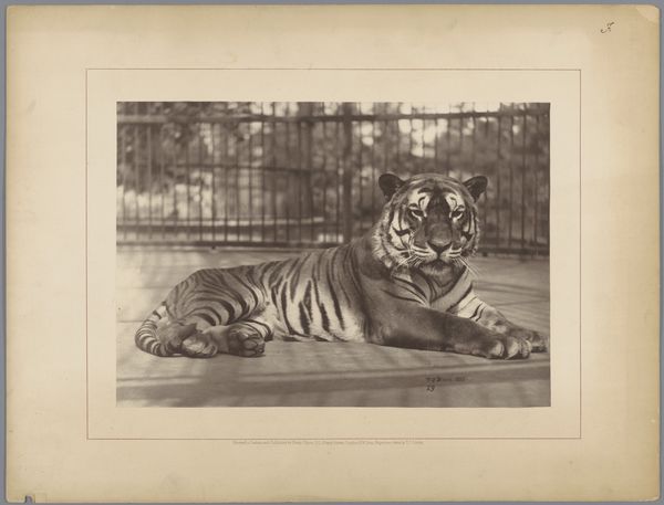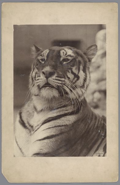 John Frederick Lewis created this etching with engraving, titled "The Head of a Tigress". The tonality is subdued, dominated by shades of grey and black, evoking a sense of calmness and introspection. The composition focuses on the tigress's head and upper body, cropped to create an intimate encounter. Notice the use of line and shadow to articulate the animal's musculature and fur. The formal elements here—line, texture, and the strategic use of chiaroscuro— invite us to consider the animal not merely as a subject but as a study in form. Lewis's work invites a semiotic reading. The tigress, a symbol of raw power, is presented with a soft gaze, challenging traditional associations of wildness and aggression. How do these visual strategies destabilize established meanings? It's this tension between the symbolic coding of the subject and its formal representation that makes this piece particularly compelling.