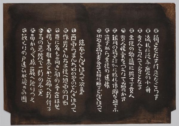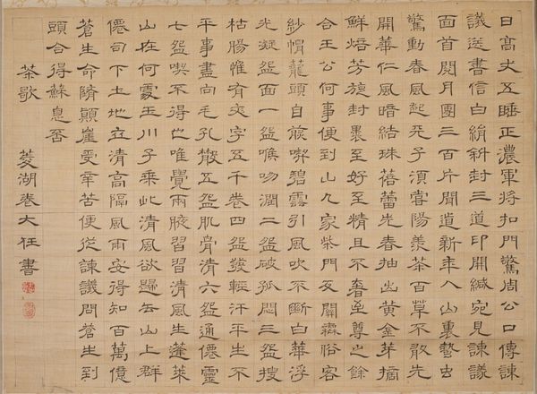 Editor: We’re looking at “Inscriptions from the Stele of Mount Yi,” a carving dating from between 960 and 1279. The stele is fractured, but the text is still quite legible. The arrangement feels orderly, almost geometric. What do you see in this piece beyond the visual layout? Curator: This stele speaks volumes about power, legitimacy, and the construction of historical narratives. Think about who commissioned it, and why. These inscriptions, meticulously carved, were not just about conveying information, but about establishing authority, linking the current regime to past glories, and inscribing their version of events onto the very landscape. How might the selection and style of calligraphy further enhance this impression? Editor: That’s a really interesting point! The deliberate nature of the carving makes me think about preservation and control. Was this intended for the elite, or was there a broader audience in mind? Curator: The stele undoubtedly had an impact on the local populace through sheer presence. This relates to the concept of “textual authority.” These public inscriptions broadcast ideology. They literally embedded political statements within the physical world. Do you see any evidence here about class, gender or identity? What are some social inequalities of the era reflected by the creation and placement of this artwork? Editor: I suppose the uniformity and official nature suggest a top-down communication strategy. Maybe a lack of representation or acknowledgement of the lives and voices of the everyday person...or women! Curator: Exactly. How would feminist theorists discuss power? We need to ask ourselves is which version of history this text promotes and whose perspectives might have been intentionally omitted. Editor: This artwork really makes you think about how stories are created and who gets to tell them. I'll never look at ancient texts the same way! Curator: Absolutely. By engaging critically with historical sources like this, we uncover broader conversations on agency, control, and how cultural power manifests across time.