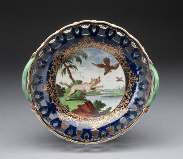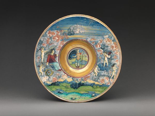 Editor: We’re looking at a ceramic plate, made sometime between 1495 and 1515, titled "Plate with arms of the Tosinghi family." It's currently held at the Metropolitan Museum of Art. I’m really drawn to how much is packed onto this surface. What can you tell me about the symbols at play? Curator: This plate speaks volumes through its iconography. The central coat of arms, of course, proclaims the Tosinghi family's identity, but let’s consider how carefully rendered the symbols are, the lion specifically. Editor: I noticed the lion, it looks almost caged or on display rather than freely roaring. Curator: Precisely! Ask yourself what the repetition of profiles evokes to you in juxtaposition of animals, figures, and vegetal elements in between them? The animals could relate to the cultural ideas of medieval bestiaries? And, consider the framing devices. Each portrait is distinct and presented, perhaps, with individual stories. Do these choices affect how we view the family’s narrative? Editor: So, each choice, even something as simple as where to place a bird, carries meaning, a reflection of cultural beliefs at the time? Curator: Absolutely. Renaissance art was very rarely 'just' decorative; it's layered with meaning intended to resonate with contemporary audiences. Understanding these layers opens a window into their world and cultural memory. Editor: That makes the plate more than just a pretty object. It's a snapshot of their identity, their values, their world. I'll never look at decorative art the same way again.