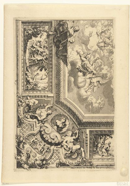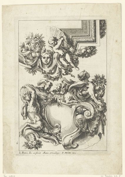 This “Tablet with woman with kransen” was made by an anonymous artist. It is an engraving, which means that the artist would have used a tool called a burin to carve lines into a metal plate, likely copper. Ink is then applied to the plate, and the surface is wiped clean, leaving ink only in the incised lines. The plate is then pressed onto paper, transferring the image. Look closely, and you can see the crisp, precise lines that define the figures and ornamentation. The process is labor-intensive, requiring careful planning and skilled execution, something typically associated with printmaking of the era. The choice of engraving speaks to broader issues of production and consumption in its time. Prints like these would have been relatively affordable, making art accessible to a wider audience. This contrasts with unique works, like paintings or sculptures, available only to the wealthy elite. The implications of this seemingly simple print are profound, challenging traditional hierarchies of artistic value, and expanding our understanding of art’s social role.
