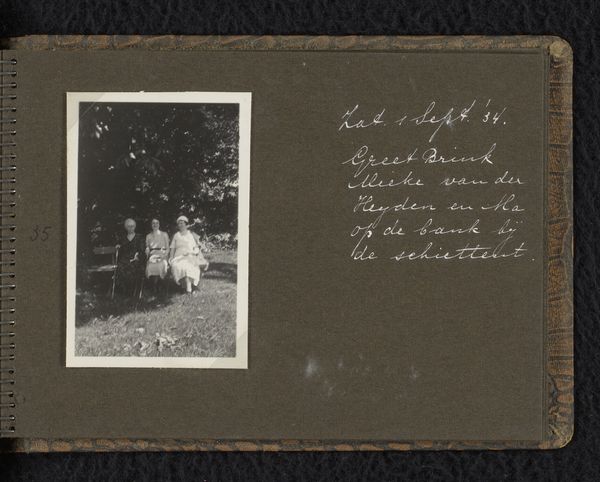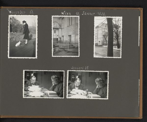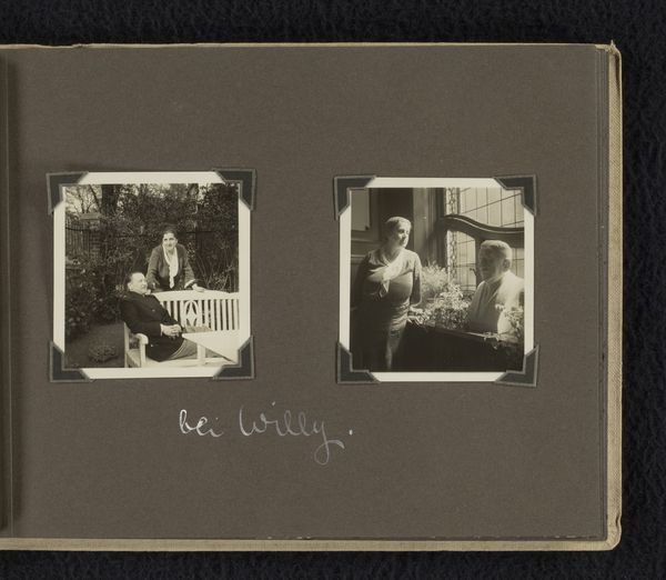 This is a photographic artwork made by the Wachenheimer family around 1933 in Germany. It shows two black and white photographs displayed on a dark page, likely part of a family album. The composition in each photograph is strikingly similar: a group of children gathered around a small table in a garden setting. The framing is tight, focusing on the children and the immediate space around them, set against a backdrop of foliage. This setup creates a sense of intimacy and enclosure, almost as if the garden is a stage. The high contrast, characteristic of early photography, emphasizes textures. This contrast is crucial in understanding the function and meaning of the photograph. It is more than a nostalgic image, it’s a carefully structured tableau. Each picture becomes a sign, representing childhood, family, and a specific moment frozen in time. The use of repetition in composition suggests an effort to capture not just individual moments, but a broader narrative about the lives and relationships of these children.