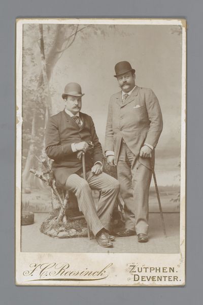 This is a photograph made by Johanna Margaretha Piek, and it portrays two men, one of whom is Stephan Piek. Photographs are, of course, indexical, meaning that they rely on the presence of light, and a mechanical process. But let's not forget the crucial role of chemistry and the darkroom. The photograph’s sepia tone and soft focus are due to particular chemical processes, in this case gelatin silver printing, popular during the late 19th and early 20th centuries. This was a departure from earlier photographic practices, like daguerrotypes, which were unique images, not reproducible. The gelatin silver print allowed for mass production, and its material qualities speak to the rise of photography as both an artistic and a commercial medium. Consider also the labor involved: from the manufacture of photographic materials, to the photographer’s skill, and finally the cultural practices that give photographs their meaning. These factors all contribute to our understanding of this modest, yet captivating portrait.