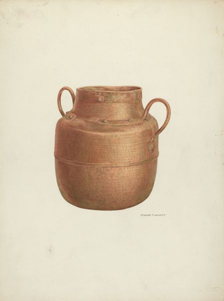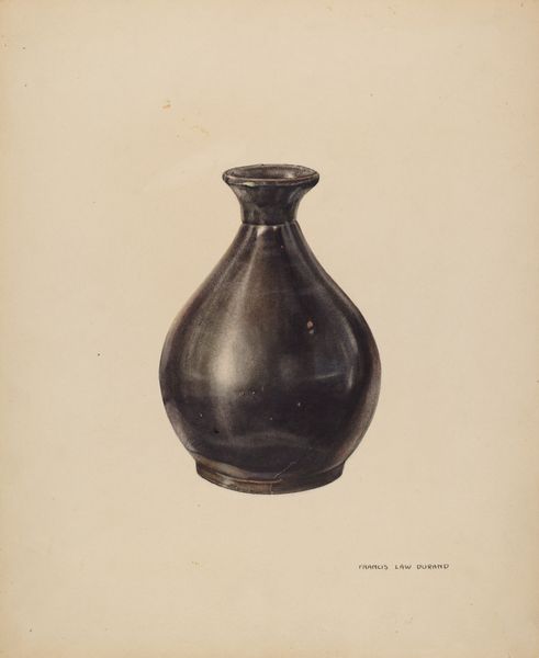 Curator: Editor: So, this drawing is titled "Jar," created around 1938 by Nicholas Amantea. It looks like it's rendered in charcoal and pencil, giving the object this lovely depth. I find it quite serene. What are your initial thoughts? Editor: Well, it’s interesting that something so simple as a jar is depicted with such care. What exactly am I supposed to be observing with this piece? Curator: Consider the labour involved. Charcoal and pencil – readily available materials – are used to depict this domestic object. The act of drawing transforms this ordinary jar. What do you make of the process itself? Is it replicating or commenting on production methods in other industries, given the date? Editor: So you’re seeing it as more than just a drawing, but rather as a statement on craft versus mass production? The artist is using traditional materials and skills in a world moving towards industrialization. Curator: Precisely! The jar itself suggests utility, function. Drawing it elevates it from a mere container to something worthy of contemplation, a testament to human skill in forming something beautiful. How might this perspective shift our understanding of "high art" versus everyday craft? Editor: I never thought of it that way. The artist chose such an ordinary subject and, through his medium, transforms it into something... more. Maybe questioning value, who decides it, and how materials are involved. Curator: Indeed. Amantea encourages us to consider how value is created, not just in art, but also in the larger context of production and consumption. Editor: I like how we started with a simple drawing of a jar and ended up talking about labor, materials, and societal values! Thanks!