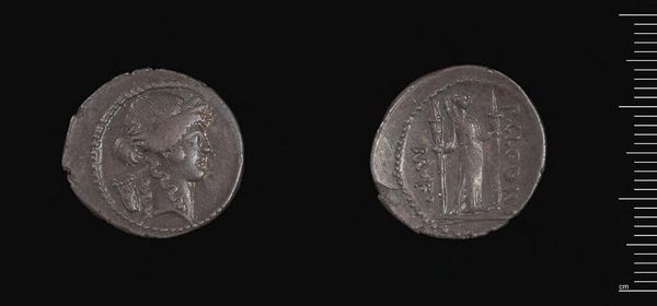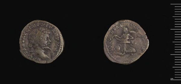 Editor: Here we have a Denarius of Septimius Severus, currently residing at the Harvard Art Museums. On one side we see Severus in profile, and on the other, what appears to be him on horseback. What do you see in this piece? Curator: The coin embodies the Roman concept of virtus. Septimius Severus, through his portrait and the depiction of him on horseback, visually asserts his strength, leadership, and military prowess – key attributes expected of a Roman emperor. Do you notice how these images echo similar depictions of past leaders? Editor: Yes, I guess it’s a pretty standard image. So, in a way, it's not just about Severus, but about continuing a specific image of Roman power? Curator: Exactly! It reinforces cultural memory, linking him to predecessors and legitimizing his rule through these powerful symbols.