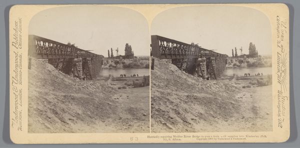 Editor: So, here we have "Bauxietwinning Suriname met arbeiders," a gelatin silver print from around 1929-1930. It seems to show bauxite mining operations. There's a train, workers... a stark, almost alien landscape. What stands out to you? Curator: I see a photographic record of resource extraction and labor. It forces us to confront the social relations embedded in this seemingly neutral depiction of industrial activity. Who owns the means of production represented here? Who benefits from the bauxite, and who endures the labor? Editor: So, you're focusing on the human cost and the political economy, rather than aesthetics? Curator: Absolutely. The photograph’s material existence as a gelatin silver print is tied to industrial processes, reflecting how the raw materials, techniques, and dissemination intersect. Where does the gelatin come from, who produced the silver, how much did the camera and the development chemicals cost? Editor: That makes sense. I hadn’t considered the photograph itself as part of the whole industrial process, too. Curator: The image flattens lived realities, rendering bodies as elements within a wider system of extraction. Where does this bauxite end up, and in what manufactured goods? Think of the journey of these raw materials. Editor: It's unsettling to realize this picture is not just a landscape; it represents global economic systems in motion, transforming the land and lives in Suriname. Curator: Precisely. The photograph isn't just reflecting reality. It’s an artifact, complicit in constructing the very reality it depicts through materials, labor and intent. Editor: I never thought about landscape photography this way before. I am left thinking about all of those questions of process and cost.