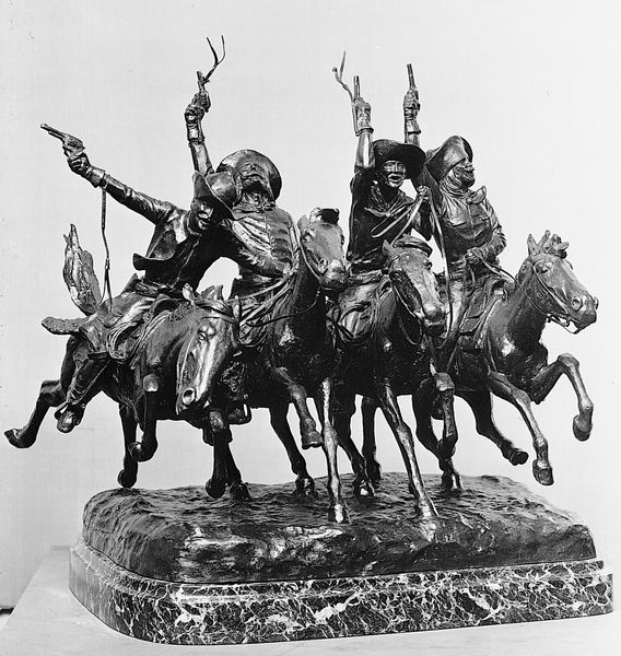 Ernest Meissonier captured this bronze sculpture, "Cuirassier with Drawn Sword", immortalizing a mounted soldier, a theme echoing the grandeur of equestrian statues throughout history. The raised sword, a dominant symbol, speaks of power and readiness, an archetypal gesture found in ancient Roman military art, where emperors were depicted leading their legions with a similar flourish. This symbol transcends mere action; it signifies the psychological readiness for conflict, a martial spirit that has resonated through centuries. Consider the evolution: From a symbol of immediate battle prowess to a representation of leadership, it echoes in Renaissance paintings of triumphant generals and later in Romantic depictions of nationalistic fervor. The image engages the viewer with a primal connection to the energy of conflict, a deep subconscious recognition of the will to power. The symbol of the sword as a tool for conquest represents a cyclical journey that is as much about psychological projection and a sense of personal agency as it is about historical accuracy.
