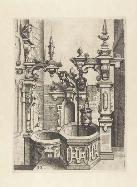 Put met een bekken in de vorm van een driepas en drie katrollen 1560 - 1598