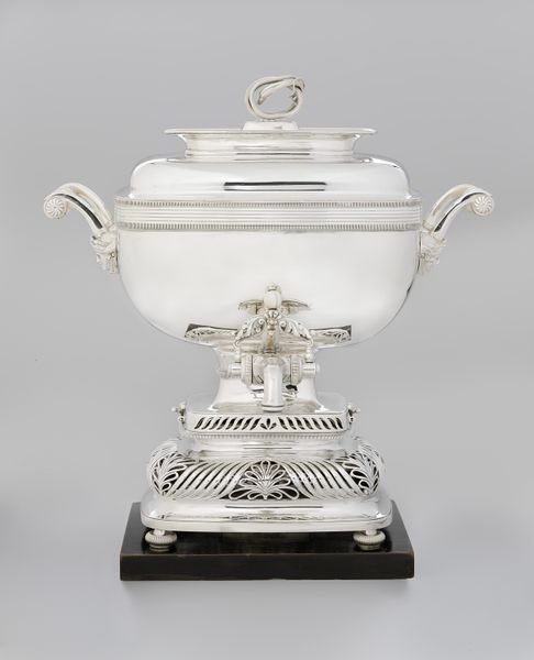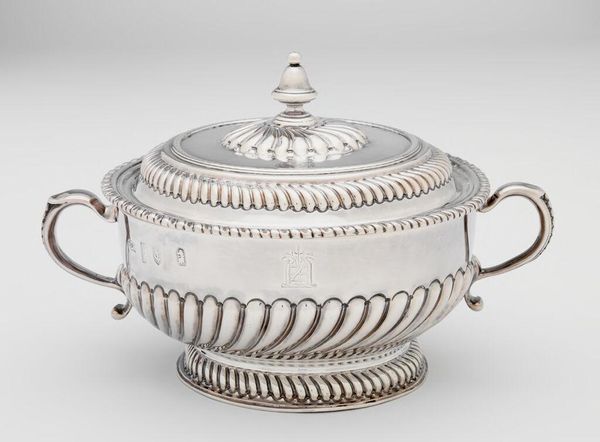 Editor: This "Bowl and Cover" is a striking silver piece by Robert Cooper. I’m curious about the engraving of the sea monster. What do you see in this piece beyond its obvious craftsmanship? Curator: This piece reflects the power structures of the era. Silverware like this wasn't just decorative; it was a symbol of wealth accumulated, often through colonial exploitation and trade. Do you see how the sea monster might connect to this? Editor: Hmm, perhaps a reference to maritime trade routes and England’s naval dominance? Curator: Exactly! And who benefited from that dominance? Who was excluded? Recognizing these layers helps us understand the complex social narratives embedded within even seemingly simple objects. Editor: That’s a perspective I hadn’t considered. Thanks for illuminating the deeper story behind this object. Curator: My pleasure. It's about understanding whose stories are told and, crucially, whose are left out.