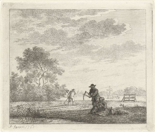 Francesco Bartolozzi made this landscape scene using an engraving technique. This method involves using a tool called a burin to carve lines directly into a metal plate, which is then inked and printed. Engraving is a labor-intensive process, demanding precision and skill. The engraver must have a deep understanding of how the lines will translate into tonal values and textures on the printed image. Look closely, and you’ll see how Bartolozzi uses a complex network of fine lines to create a sense of depth, atmosphere, and form. The varying density and direction of the lines create light and shadow, giving the landscape its three-dimensional quality. While seemingly simple, the print reflects a significant amount of highly skilled work. By understanding the process, we can move past the image itself and appreciate the labor and artistry involved in its creation, blurring the lines between craft and fine art.