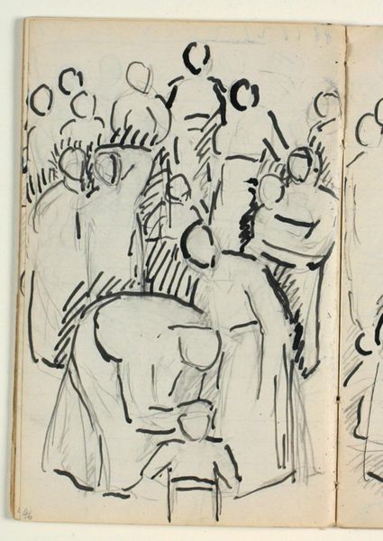 Niels Larsen Stevns made this pen and ink drawing, "Udkast til "Kristus velsigner de små børn", sometime between 1864 and 1941. It's like a visual shorthand, a quick notation of a scene. You get the feeling he's working out the kinks, figuring out where to put the weight and the flow. I love how immediate it feels, like a thought caught on paper. The lines are so direct and economical, creating a sense of movement and energy. See how he uses hatching to create shadows behind the figures on the right, almost like a stage backdrop. There's a real economy of means here, reminiscent of Matisse's line drawings. Both artists share that ability to capture a form with just a few strokes, suggesting volume and emotion with minimal effort. The beauty of this piece lies in its ambiguity, inviting us to complete the picture in our minds.