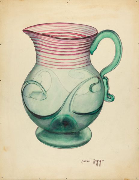 John Dana made this drawing of a pitcher, we don't know when, but it has a charming sense of the everyday. There's a simple, washy quality to the paint, with delicate lines building up the form. What I love about this piece is how it captures light, especially around the base. It's a gorgeous, watery teal that pulls you in. Look at the handle, see how the paint pools and thickens, giving it a sculptural feel? There’s a real attention to detail in the rendering of the glass; you can sense Dana’s interest in the material and its ability to reflect and refract light. This work reminds me of Morandi's still lifes, with their quiet contemplation of ordinary objects. Dana invites us to see the beauty in the mundane, to appreciate the subtle dance of light and shadow on a simple pitcher.