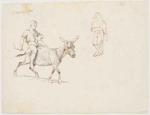 Curator: Before us, we have Théodore Géricault's "Draught Horse," created sometime between 1818 and 1819. It’s a pencil and graphite drawing on paper. It now resides here at the Art Institute of Chicago. Editor: My initial impression is one of weariness. The horse stands passively, head slightly bowed. The lightness of the pencil strokes lends a fragile quality to the animal, despite its implied strength. Curator: That's astute. Géricault, known for his Romantic leanings, was fascinated by horses – both their physical power and symbolic weight within 19th-century French society. Consider the era – the horse was crucial for agriculture, transportation, and, of course, warfare. It represents labor, but also social status and military might. Editor: The harness is particularly striking. It binds the animal, undeniably linking it to service and human control. In many cultures, the horse is seen as a symbol of freedom and virility, but here, that symbolism is clearly curtailed. Could the bowed head signify something more, perhaps a subtle form of resistance, or a tragic understanding of its own subdued existence? Curator: Perhaps. Or perhaps it reflects Géricault’s wider interest in the working class and the burdens they carried, often invisibly. He had an intense awareness of the societal structures that controlled and directed life, portraying their daily struggles. Note the minimal background - it forces us to confront the animal directly. Editor: The sketch-like quality is fascinating, too. It lacks the dramatic flourish you might expect, choosing instead to observe. This immediacy captures a fleeting moment, almost as if Géricault is reminding us of the ephemerality of existence and the transient nature of power, in its varied forms. Curator: And perhaps gesturing towards broader Romanticism, in which truth and beauty are rooted not in some static ideal but in capturing the truth of the moment and our perception of it. It also might express the anxiety of the post-Napoleonic era; anxieties about order, class and future power structures. Editor: Thinking about those power dynamics, seeing the drawing evokes thoughts of so many symbolic layers… it's like a subdued epic, where a single animal bears the weight of history on its withers. Curator: Precisely. Géricault captured something profound in what seems, on the surface, like a simple study. A convergence of aesthetic ideals, class tensions, and rapidly transforming cultural values are subtly revealed here.