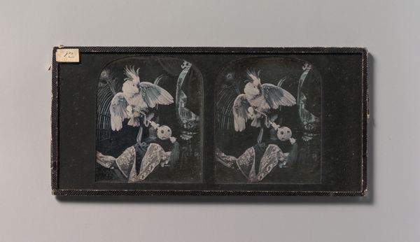 This stereograph, "Still-Life with Cockatoo, Mirror, Ornamental Ball, Vases, and Lace", was created by T. R. Williams, probably in England, in the middle of the 19th century. The image contains a plethora of symbolic objects, and it's a window into Victorian society’s fascination with exoticism, domesticity, and visual spectacle. The inclusion of a cockatoo, for example, speaks to British colonial reach and the acquisition of rare and luxurious items. At the same time, the arrangement of objects such as the mirror and the ornamental ball may reference the popular Victorian genre of memento mori and the vanity of earthly possessions. Stereographs were a popular form of entertainment and education at the time, consumed in both domestic and commercial settings. Examining photography journals, trade records, and personal accounts helps us understand the cultural work that images like this performed. It reveals the complex interplay between art, commerce, and social life during the Victorian era.