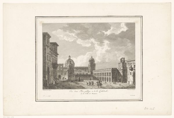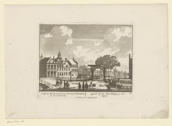 Editor: Here we have Jean Baptiste Ambroise Marcellin Jobard’s "View of Castle Limbricht," made sometime between 1820 and 1850. It's a print, an engraving to be precise, depicting a stately building surrounded by water. I'm immediately struck by the scene's almost detached calmness. What do you see in this piece, particularly when thinking about imagery and symbols? Curator: What stands out to me is how Jobard uses this calm facade to speak volumes. Notice the castle’s central position, a fortress but depicted almost serenely, like a memory. Water is a potent symbol—of reflection, purification, but also separation. The castle, surrounded by water, evokes isolation, security, but perhaps also being cut off from the mainland, from the present, which amplifies an almost dream-like memory or timelessness. What does the little human figure at the bottom suggest to you? Editor: He seems rather small and ordinary compared to the castle itself, emphasizing the imposing nature of the architecture. Could this imply the changing roles of castles during that period, perhaps transforming from defensive structures to symbols of aristocracy? Curator: Exactly. He's on the outside of this image, a reminder that the memory and icon of the castle are changing roles. Also consider the era – the 19th century. The romanticized view of the past. Jobard presents not a living, breathing castle bustling with activity, but an echo frozen in time, symbolizing historical weight and continuity, which reflects our nostalgia of past era in modern life. The building stands isolated in the middle of its very own moat. What do you think about the building's style in that context? Editor: That makes me think of Neoclassicism and its tendency to revisit older forms. That it is based on rational, almost scientific and exact imagery suggests something about that castle and what the image wants us to think of it. Thanks for pointing out the cultural memory in the symbol! Curator: Indeed, by understanding visual symbols, we recognize the castle not just as a building, but as a potent carrier of history, power, and perhaps even longing, all communicated silently through line and form. It makes you consider what imagery we build and why.
