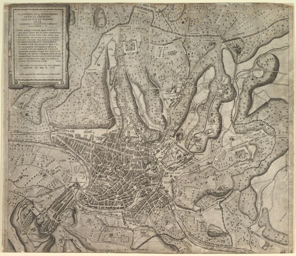Matthijs Pool created this print titled, "Siege of Menen, 1706," using etching techniques. This piece provides a detailed illustration of the siege during the War of the Spanish Succession. Pool, born in Amsterdam, lived in a society undergoing significant political and military upheaval. Consider how maps of this period were not only geographical tools, but also strategic assets and instruments of power. They influenced military planning and shaped public perception of these conflicts. Look closely at the siege, which represents a clash of empires and the human cost of war. The detailed rendering of fortifications and troop movements presents a controlled, almost clinical view of battle. Yet, it belies the intense human drama of conflict. This artwork encapsulates the intricate dance between power, knowledge, and representation in a time of constant change.