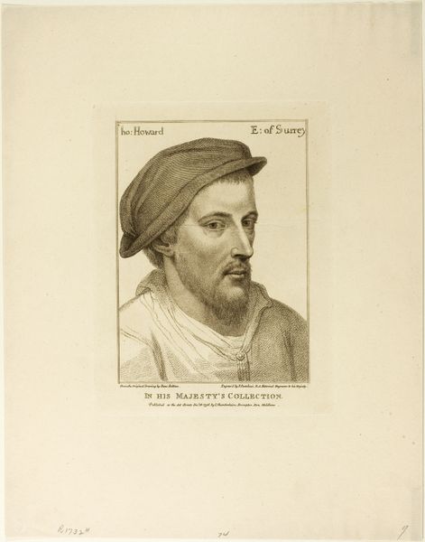 Editor: This is Francesco Bartolozzi’s "Portrait of a Man," from around 1794-1799, made using engraving and etching. It’s very detailed, with precise lines. I’m struck by how somber the subject appears. What do you see in this portrait? Curator: It’s fascinating how this seemingly straightforward portrait opens up broader questions about representation and power. Who was this man, and why was his image deemed worthy of preservation and dissemination through print? This work begs us to consider how images historically have been used to solidify the status of certain individuals while obscuring others. How do you think this portrait reflects or challenges societal hierarchies of its time? Editor: That's a perspective I hadn't considered. His clothing does look like that of someone important... Curator: Exactly! Notice the cap and the rich fabric of his robes; they signal status. Yet, the softness in the eyes hints at vulnerability, perhaps challenging the notion of unwavering patriarchal authority. What tensions do you perceive between the representation of status and the suggestion of individual character? Editor: I see that now – there's a humanizing aspect, too. So, looking at portraits like this allows us to question not just who is represented, but how they're represented and for what purposes? Curator: Precisely. This image serves as a lens through which to examine the complexities of identity, status, and the subtle ways power dynamics manifest in art. Hopefully, it encourages critical engagement with visual culture as a whole. Editor: Definitely. It's much more layered than I initially thought!
