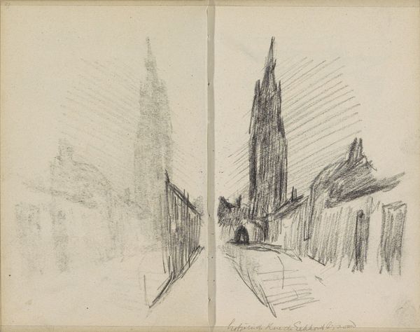 George Hendrik Breitner sketched the Nieuwe Kerk in Amsterdam, likely around the turn of the century, using graphite pencil on paper. The apparent simplicity of this medium belies its significance. Pencil, though easily accessible, is a fundamental tool of both artists and artisans. Its capacity for precise line-work makes it ideal for architectural drawings, yet here, Breitner uses it expressively, capturing the monumentality of the church with an economy of strokes. The texture of the paper also plays a part, giving a tactile quality to the sketch. Consider, too, the social context: while the church represents established power, Breitner positions himself outside, sketching from the street. His choice of medium democratizes the image, making it accessible. Ultimately, this work reminds us that even the humblest of materials can convey profound artistic vision, blurring the lines between high art and everyday experience.
