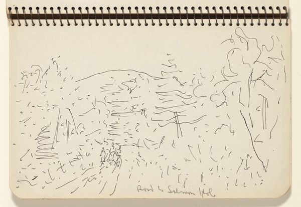 Milton Avery made this pencil sketch, “Seated Figure in a Landscape,” probably en plein air, sometime in the mid-20th century. The softness of the pencil on paper allows for a quick capture of light and form, prioritizing the immediacy of observation over detailed representation. Avery’s choice of pencil and sketchbook aligns with a tradition of working-class artists using readily available, inexpensive materials. The rapid strokes and unfinished quality suggest a process of exploration, rather than a polished final product. There’s a sense of the artist working directly from life, quickly rendering the scene before him, mediated only by these humble means. While this sketch might seem simple, it reflects Avery's broader artistic ethos of reducing forms to their essential elements. By embracing the directness of the medium, Avery rejects the preciousness associated with high art, inviting us to consider the value of everyday materials and the labor involved in even the most modest artistic endeavors.