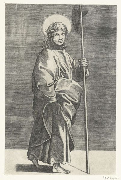 Editor: Here we have Antonio del Pollaiolo’s oil painting, *David with Goliath's Head*, from 1472. What strikes me most is the figure of David; he seems so young and almost nonchalant standing over Goliath’s head. How do you interpret this work? Curator: Well, consider the potent symbolism embedded here. David, the underdog, stands as a visual metaphor for Florence itself, often facing larger, more powerful adversaries. His victory wasn't just physical, but also symbolic of the triumph of right over might, of wit over brute force. Notice how his very stance mirrors confidence. Editor: That's fascinating. It's almost as if the artist is less interested in portraying the gruesome details of the event, and more interested in emphasizing David's moral victory. The expression on Goliath's face certainly reinforces that! Curator: Precisely. Think about how this imagery would resonate with a Florentine audience, constantly navigating complex political alliances and threats. Goliath’s severed head isn't just a trophy; it’s a warning and a symbol of defiance against tyranny. Editor: So, the image carries both religious and political weight. I also notice David looks directly at the viewer, further driving home the idea that this scene carries deep cultural meaning, but maybe I'm biased towards a heroic reading. Curator: Your bias reveals the enduring power of symbols to evoke particular feelings. But look closer: does that direct gaze feel entirely triumphant, or is there also a hint of something else... perhaps burden? Even melancholy? Consider that psychological weight too. What cultural memory is the painting trying to sustain? Editor: That's a fascinating perspective. I hadn't considered the nuances of David's expression beyond the obvious victory. It really opens up a richer interpretation. Curator: And that’s the enduring power of art - it shifts how we see ourselves, the image of David continues to resonate even now, in other contexts, across different spaces. Editor: I'll certainly be considering the broader implications of the symbols in paintings more deeply from now on. Thank you for illuminating that.