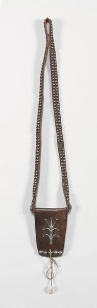 This pouch was made by a Navajo, or Diné, artist with leather and metal studs, and it's now here at the Minneapolis Institute of Art. What strikes me about this piece is the contrast between the supple leather and the rigid metal studs. The dark, weathered leather suggests a material shaped by use and time, while the studs offer a rhythmic pattern, like musical notes marching along the edges. I'm drawn to the way the studs are meticulously placed, each one reflecting light and creating a subtle shimmer. The central stud on the pouch’s flap acts as a focal point. You can imagine the maker carefully attaching each stud, creating a tactile and visually engaging surface. It reminds me of Eva Hesse’s repetitive forms, but here, on a functional object, transformed into art through the artist's hand. It's an invitation to touch, to feel the connection between the materials and the maker.