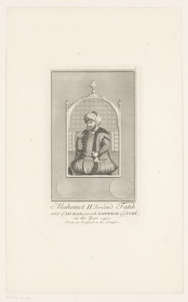 Editor: This is "Portrait of Mehmet IV," an engraving made sometime between 1692 and 1745 by Claude DuBosc. It's quite formal and striking. What jumps out at you about this piece? Curator: What I find particularly interesting is the role such images played in shaping European perceptions of Ottoman rulers. Engravings like this, circulated widely, served as a primary visual source. It frames Mehmet IV in a very specific way, doesn't it? Editor: It does. He looks rather dignified. Were these portraits typically commissioned by the Ottoman court, or were they produced independently for a European audience? Curator: More often than not, they were created by European artists for a European market, reflecting European interests and biases. It's vital to consider the political context: the Ottoman Empire was both a trading partner and a military threat, and imagery played a crucial role in constructing and perpetuating those ideas. How do you think this image participated in the wider representation of the "Orient"? Editor: Hmm, it feels like an attempt to portray him as a legitimate ruler, someone to be taken seriously, maybe even feared in a respectful way. Curator: Exactly. The inclusion of details alluding to his power – even if romanticized or filtered through a European lens – speaks to a specific kind of political messaging that prints facilitated at the time. Images traveled, creating 'truths' about a distant world. Editor: So, we shouldn't see this just as a portrait, but as a political statement? Curator: Precisely. It's a reminder that artistic representation is always shaped by cultural and political agendas. That's why these seemingly straightforward depictions require such critical analysis. Editor: That's a fascinating perspective. I never considered how politically charged a portrait could be!