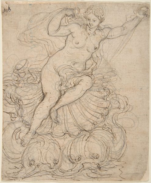 Editor: Here we have an intriguing piece titled "Saint Michael Conquering Satan." It's undated, created by an anonymous Italian artist, employing pen, ink, chalk on paper—resulting in a print, currently residing here at the Art Institute of Chicago. My first thought? It's dynamic, dramatic, even a little unsettling. The loose, swirling lines add to this feeling of intense movement. What catches your eye when you look at this work? Curator: Well, what a deliciously tangled dance between good and evil, eh? It reminds me a little of the bittersweet irony of life. Those quick, frantic lines? They whisper of the internal battles we all face. The angel’s not just defeating Satan; he’s battling something within himself. The "something within himself" is really whatever the hell (no pun intended!) each of us thinks it might be in each of us. What do *you* think that "something" is here? Editor: Maybe that "something" is doubt, or even the potential for corruption within Saint Michael himself? Curator: Precisely! That push-and-pull, that gorgeous struggle... that’s what makes it sing. It's as if we are seeing a snapshot of morality at war. Is there anything concrete in this "sketch" for you, in terms of a symbol or form, or in some stylistic gesture or moment, that maybe encapsulates "morality" at war for you here? Editor: For me, the strongest symbolic part would have to be that Michael is physically above Satan—both spiritually and, quite literally, within the frame. That shows who has dominion. Curator: I love that read. Makes me think that perhaps anonymous *wanted* us to come up with some more individual answers here; or, in our very uncertainty as to what to think about this "saint and satan sketch", each viewer's reading of those lines is an affirmation of free will in the face of good or evil! That said, any afterthoughts here? Editor: This makes me appreciate how much even a simple sketch can convey complex ideas! Curator: Couldn’t agree more.