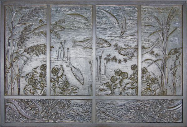 Curator: What a mesmerising pattern; it's the kind of design that makes you want to peel it off the wall and keep it for yourself! Editor: Indeed! This panel of ceramic tiles was designed by William Morris, produced by William De Morgan, dating back to 1876. Look closely at the meticulous handwork applied to each individual tile; considering their context—the Arts and Crafts Movement—such production underlines a dedication to handcrafted quality versus mass-produced, industrial wares. Curator: It's charming, truly. It speaks of quiet, contemplative hands carefully laying paint or glaze to render these botanicals. It does have a kind of sombre air though, wouldn't you agree? Not dour, necessarily, but there's an elegiac tone... Editor: Well, the somber effect may lie within its manufacturing conditions and use; such aestheticism was typically commissioned for affluent homes, even while Morris and De Morgan championed reform for the working classes from whose labor such items benefited. What a contradiction, to celebrate the working class while simultaneously feeding into capitalist structures of patronage. Curator: Yes, that tension is palpable. And thinking of the process, it would have been so labour-intensive! To envision a whole wall covered like this, it is hard to see the people doing this labor and not their product as the outcome. And look closely – no two tiles are exactly identical! It's the small inconsistencies, the delightful irregularities that show that human involvement is so critical for craft pieces of that kind. You wouldn't see it today. It adds an unparalleled layer of meaning and appeal to art for art’s sake that now serves utility and value at once. Editor: A really thought-provoking contribution, thank you! Curator: The pleasure was all mine. A marvelous piece indeed.