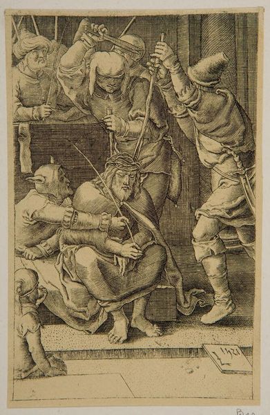 Curator: Here we have Edward Burne-Jones' drawing "The Battle of Beth-Horon – Joshua Commanding the Sun and Moon to Stand Still." The Pre-Raphaelite style is quite evident, wouldn't you say? Editor: Intensely so. There's a medievalism to it that evokes tapestries and illuminated manuscripts. It feels… staged. The monochrome intensifies that impression, almost as if one’s seeing a sculpted ivory panel instead of the bloody, complicated reality of war. Curator: True. The materials, likely ink on paper, are simple, but look at the complexity he achieves. Burne-Jones has focused intensely on details like the armor, and weapons of the soldiers—every individual component adds to the density of the entire illustration. I wonder about the workshop practices, his use of assistants, models… How might their labor impact this historical rendering? Editor: That density contributes to the way Burne-Jones reimagines masculinity. While the subject—the biblical story of Joshua—is steeped in warfare, the style and his technique push beyond standard depictions of brute force. The piece invites questions about the cultural roles of religion and violence, and what is sanctioned as heroic, right? Curator: Right. It definitely plays into Burne-Jones' fascination with narrative art and history painting as well, a tendency he shared with many Pre-Raphaelites. The meticulous, hand-crafted nature pushes against industrialization, championing more “authentic” labor. The creation becomes intrinsically linked to its message. Editor: And beyond the male figure, let’s not forget what kind of cultural weight rests on these mythic stories, and whose voices are pushed aside when narratives of patriarchal strength become the primary ways we think about faith, leadership, and identity. Does Burne-Jones grapple with these complex issues, or simply reproduce them? Curator: I believe that’s part of what makes his work perpetually relevant and always in need of re-evaluation and discussion. I am fascinated by his meticulous, hands-on process, with its connection to artisanal practices. Editor: For me, this piece highlights the ongoing need to unpack inherited power dynamics—those found within art history, certainly, but equally so in the very narratives we choose to represent.